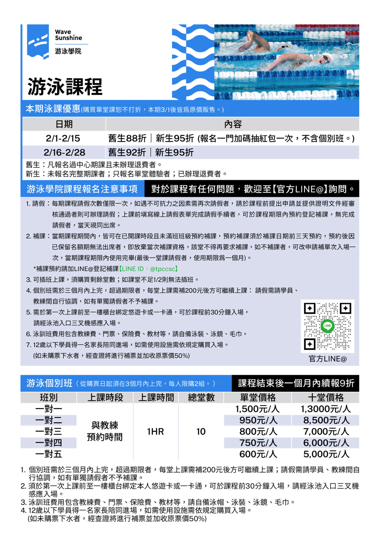可免費使用游泳池及體適能中心(暑假期間時段暫停)。