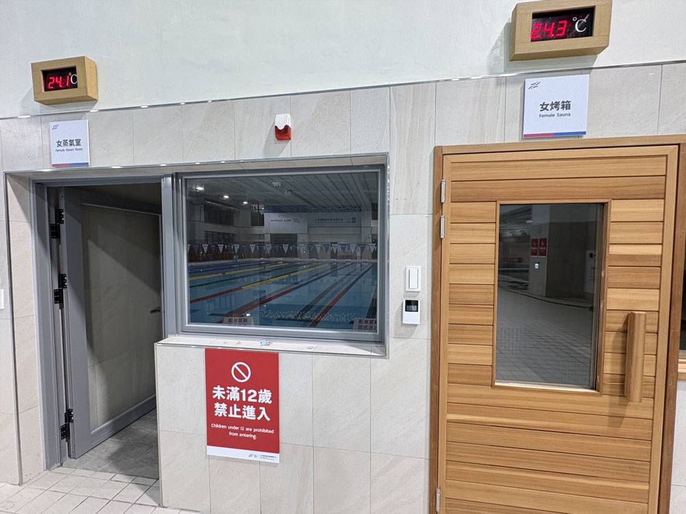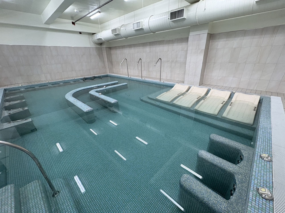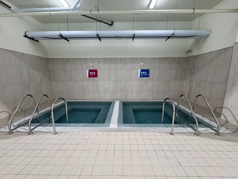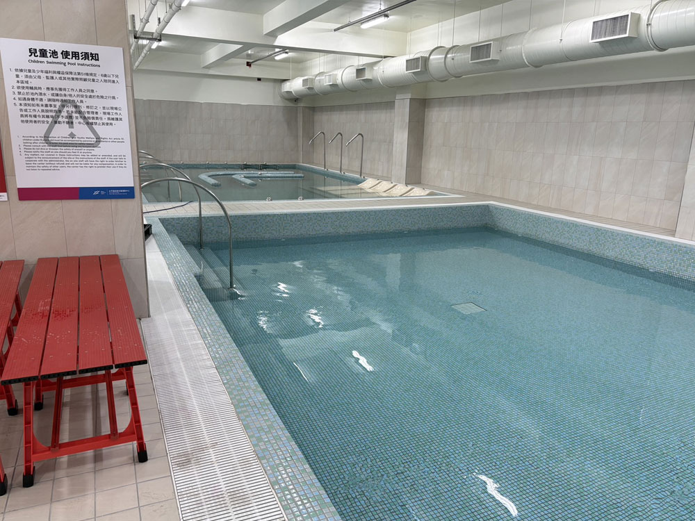 室內溫水游泳池內設有SPA水療池、25公尺水道、兒童訓練池、冷熱水池、烤箱、蒸氣室。