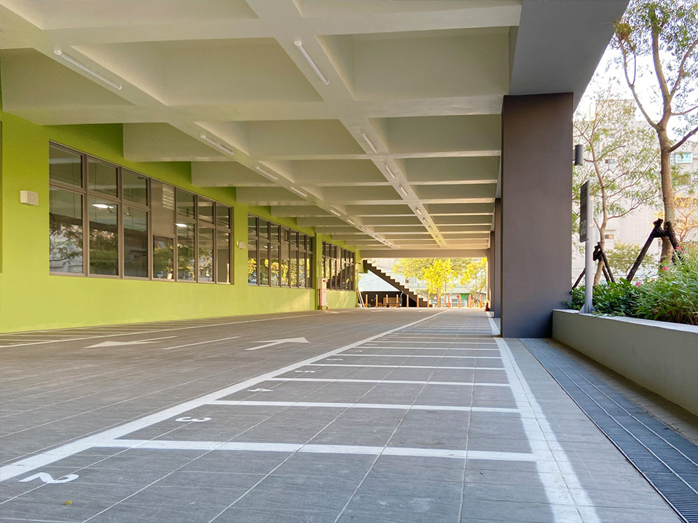 採用車牌自動辨識系統,總計有70格機車停車位,39個汽車停車位(含身心障礙停車位4個,孕婦、育有六歲以下兒童停車位1個)